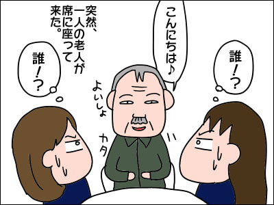 「一緒に食べよう」と突如背後に高齢男性( ゚Д゚)