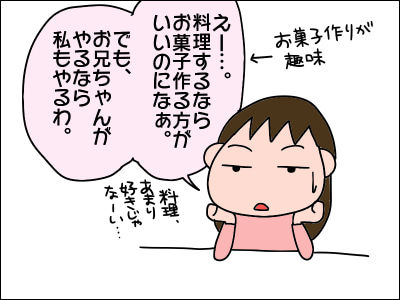 娘は少しずつ料理をするようになりましたが、男2人は全くです。