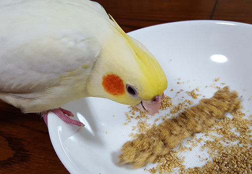 数日前は誕生日だったので小鳥用オヤツの『かじりま専科』をプレゼントしたのにかじりつく気配は一切なくて、数粒ずつバラしてあげないと食べません。