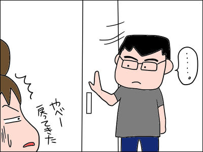 夫が部屋から戻ってきました。