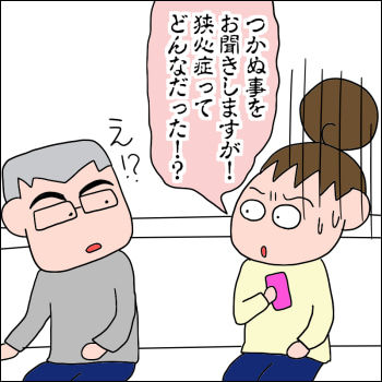 そうなの。胸がキューって苦しくて苦しくてゼェゼエしながら検索したら狭心症。
