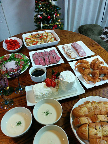 家のクリスマスは旦那の作ったカレーだったので(^_^;)素晴らしい食卓に、羨ましくなりました(*^^*)。