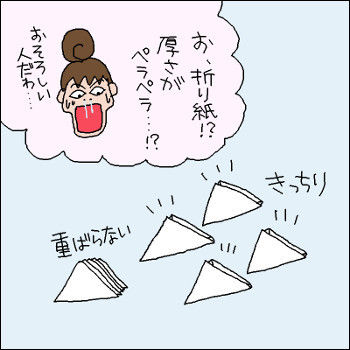 一瞬、スーパーの袋と分からないくらいに、きっちり角も揃って三角形。