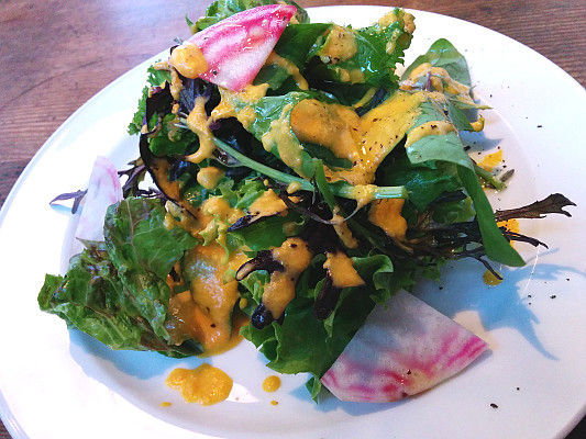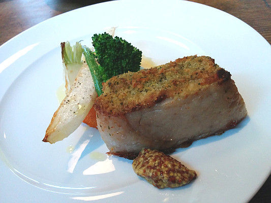 鎌倉野菜と、とんでもなく柔らかい豚肉のパン粉焼きだったかな、料理名忘れたけど、豚肉のなんか。