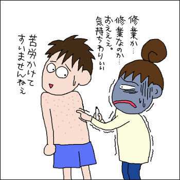 今も、茶色くなったぶつぶつが、背中一面にある息子である。