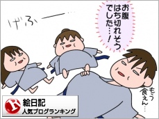 『げふー』って三人の浴衣の帯が外れて顔までパンパンになっているのがすごく可愛い(///∇///)
