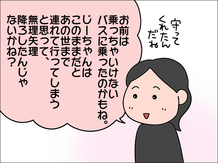 「きっとお婆ちゃんは女学生の友達がいる楽しいバスに乗ったんやで。やから悲しむ事ないよ。婆ちゃんずっと楽しいまんまやから。」と友達に言ったのを思い出しました(途中関西弁になりました)