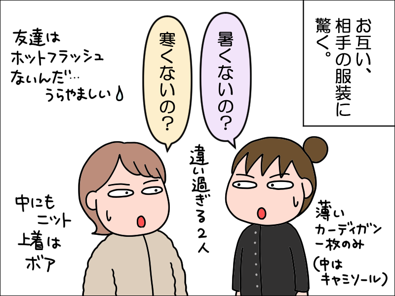 私もホットフラッシュで6日は暑くて上着脱いで歩いてました。