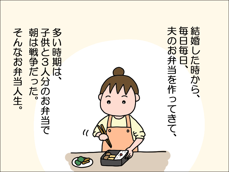 私も一緒です。結婚して34年間、出産の後1ヶ月✖️3人で3ヶ月だけお休みしたのみで、後はずーっと作っています。しかもウチは娘2人が仕事と学校にお弁当を持っていってるので、合計3個作ってます。