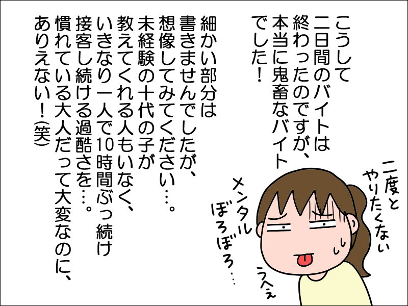 「大変だけど、ま、2日間だけだし!もう仕事覚えたし!」