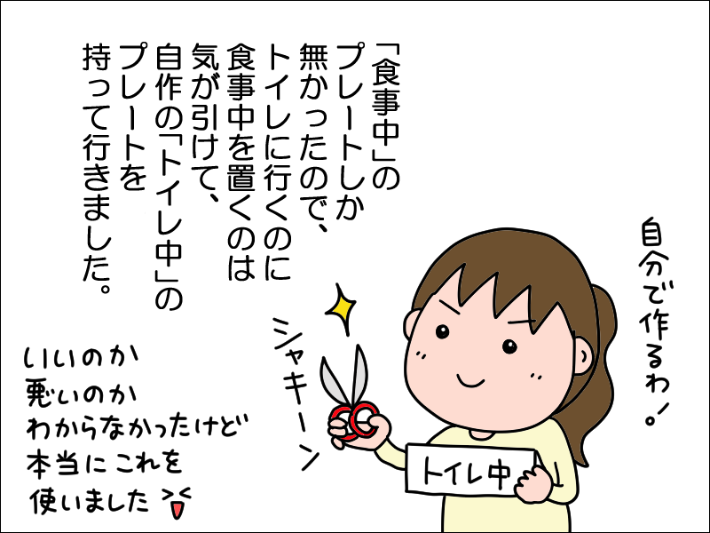 「トイレ中」のプレート、あぽりさんらしいです(笑)