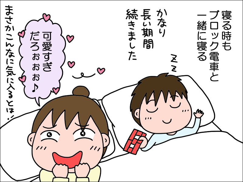 あの四角い形、幼い子どもに手のひらフィット。握りしめて寝てましたね〜😌😍