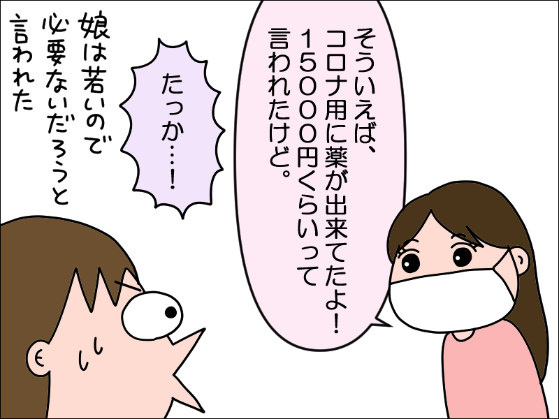 私も「重症化するリスクは低い」(若くないんですけど)と判断されてコロナの薬は飲んでません。