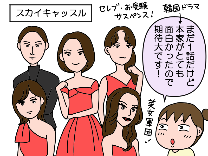 スカイキャッスル初回おもしろかったです!録画し忘れたのでTVerで見ました!韓ドラリメイクなんですね!ということは韓ドラ勢はもう結末知ってるのか!