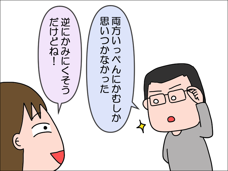 両方いっぺんにかむ方法しかできなくて、片方ずつができないです!w