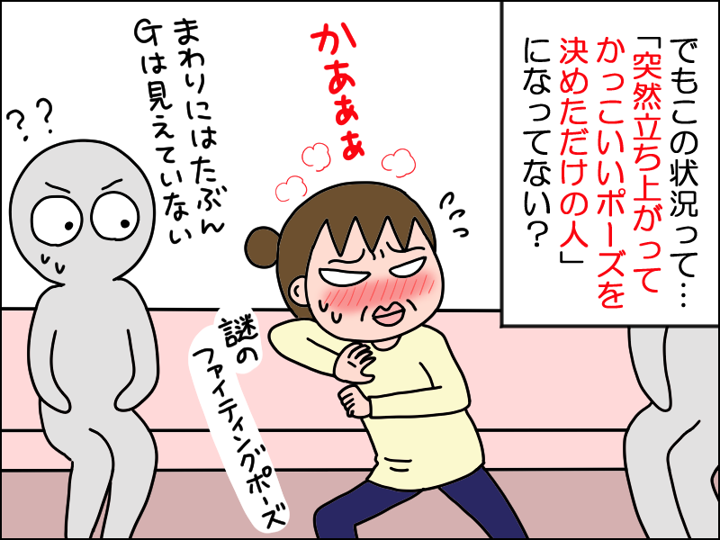 このファイティングポーズ、過去記事のお風呂場で娘さんを守る時と同じ!