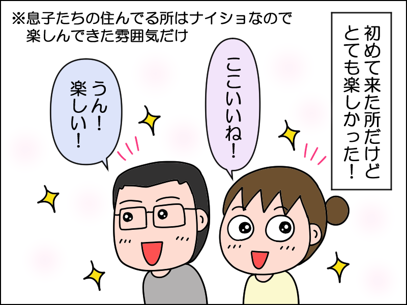 2025年11月08日 息子夫婦の新居へ② 夫婦二人暮らしになりました。社会人の息子(既婚)と娘が離れて暮らしていますプロフィールはこちら。 ①の続きです。夫はいつも食べないのですがこの日は一緒に食べてました!お土産屋さんも堪能!私と夫はピザを久しぶりに食べたのでとても美味しかったー!③へつづく。 ----------------◆ソフトクリーム関連記事◆黒ソフトもインパクトある 信玄餅のソフトも美味しい 川根茶ソフトも好き! ○●○●○●○●○昨日の記事にコメントありがとうございました義両親が来る!ってお嫁さん側は大変ですよね。食事は基本外食です。二人のおすすめのお店に連れていってもらったり変わった物を食べられたので楽しかった!----------------アプリでの読者登録をお願い致します!毎日夜21時頃に更新予定です。(時々お休みする事があります)InstagramとXとスレッズはこちら↓----------------書籍もよろしくお願いいたします♪Amazon楽天78歳母とブロガー娘の 今日からいきなり介護です [ あぽり ]------------------恐れ入りますが、こちらをポチっとよろしくお願いいたします♪1回押すだけで大丈夫です! 絵日記ランキング 「子供」カテゴリの最新記事 < 前の記事次の記事 > コメント コメント一覧 (8) 8. 8 2025年11月20日 18:53 40代女です。 嫁なのに料理を振る舞わないことをすごくとやかくいう地域の出身である夫と結婚してしまって、毎回義理の実家と会うたびに、特に義理のお父さんの方から「嫁のくせに…!」と言われています。 女性は生まれた時から、家事も育児もフルタイム勤務も介護もすることが前提という、何とも呪われた思考の地域出身の夫で、未だにとても苦しみながら生活しています。 地球が高速で自転して時代が早く変わり、嫁なのに料理をしないことをとやかくいう人は早くいなくなれ!!と思いながら読みました。 (介護は断りました) 最後のピザパーティーのところ、涙です‼️ 0 apori3 がしました 7. 2025年11月10日 23:57 テイクアウトピザで姑もてなすのが許されるとか最高 昭和な意地悪ばーさんノリなら手作り料理じゃない場合、高級寿司でも買ってあげないと嫁いびりが始まるところだ 0 apori3 がしました 6. レインボー 2025年11月09日 20:34 素敵な時間、良かったですね^_^ 私もソフトクリーム食べてきます♪ 大好物は札幌or千歳空港のキノトヤのソフトクリームがNo.1です^_^ 0 apori3 がしました 5. あいあい 2025年11月09日 16:49 お泊りで一番困るのがご飯です! 何か作らないといけないかなー?お口に合うかわからないし、、、と考えてしまうので、息子さんから言ってくれるのも、外食でも快く受け入れてくれる義家族も、とても良いですね! 0 apori3 がしました 4. ゆっこ 2025年11月09日 12:48 こんな義母さんだったら最高ー!!! ホテルに泊まろうか?とか気遣ってくれるなんて!なんて優しいの、、! 夜ご飯も外食やテイクアウトならどんなに楽か。 うちの義母様は新築の家にスーツケースをガラガラひいて床と壁にタイヤの跡つけてました(笑) 気遣いのできるあぽりさんのような義母さんの所へ嫁ぎたかったです!!! 0 apori3 がしました 3. ニーナ 2025年11月09日 08:29 基本外食っていいですね‼️ 義両親を招待するとなると、お嫁さん側としては普通は料理を出さなきゃって思うと思うし、義両親側としてもそのつもりで来ると思うんです。 でも、義両親側が最初から外食のつもりでいてくれるとお嫁さんもすごく気楽だと思います。 特に私は料理がすごく苦手で、もてなし料理となると更に負担に思うタイプなので、すごく良いなと思いました。 あぽりさんがお姑さんなら、私も料理苦手ですって素直に言えそうです(笑) お嫁さんに極力負担をかけないあぽりさんの配慮が良いですね。 0 apori3 がしました 2. けいこ 2025年11月08日 23:16 やっぱり、さすがー!と思いました。 そうですよね。 食事を作る、食器を洗う時間を考えると、久しぶりに会うのだから。みんなでわいわい食べて、おしゃべりする時間を一番大切にしたいですね。 お嫁さんに負担にならないよう、みんなで楽しめるように。観光しがてら外食いいですね。 息子さんが「夕はん、考えてない」と、テイクアウトでもいいか?とサラッと聞けるのも意外にできそうでできないんです。結構、難易度高い技。 若いおふたりなのに本当に爽やか〜。 肩の力を抜いてお互いに気を遣い過ぎないよう、でも気が利いてる関係が築けるって素敵です✨ すごく、参考になりました。 ありがとうございます😊 0 apori3 がしました 1. フェリス 2025年11月08日 21:47 よっちゃんの配慮が素晴らしくて、感動ものです! 元をたどれば息子ちゃんが良い子だってこと! 更にたどれば、あぽりさんの子育てが間違って無かった!て事ですね。 0 apori3 がしました コメントフォーム 名前 コメント 記事の評価 リセット リセット 顔 星 情報を記憶 コメントを投稿する 【コメント投稿時の注意事項】投稿いただいたコメントはライブドアスタッフの確認後に公開されます。夜間帯にいただいたコメン