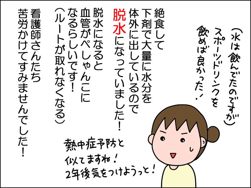 3年前は脱水してたので、今回は注意して交互に白湯を飲んでました