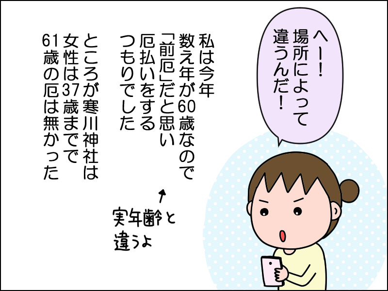 理由はいろいろみたいですが、香取神宮(千葉にあります)で聞いたら、還暦と重なるため、おめでたいから厄年に当たらない…としていると神主さんに言われました