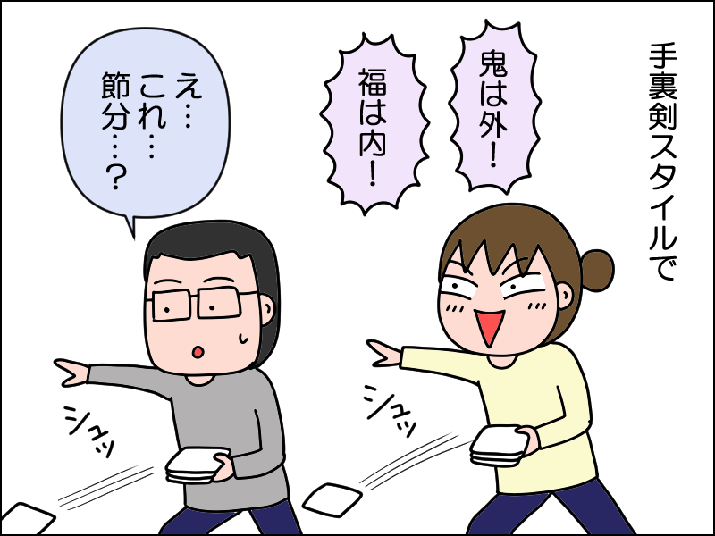 毎年恒例の手裏剣型豆まきですが