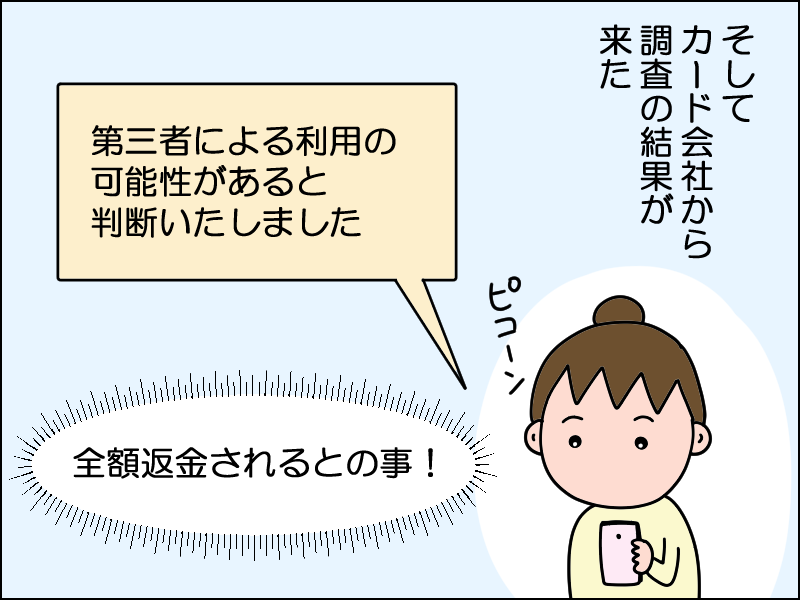 だからどんなに気をつけていても運悪く当たるときはあるので、カード会社もわかって対応してますよね。